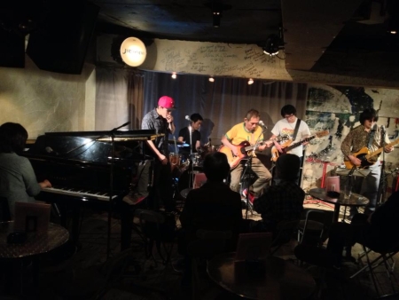 その後は、荻窪Roosterでハリケーン湯川(Vo,Gt from 福岡)、倉本巳典(Bs)、松本照男(Ds)のトリオと一緒でした。ハリケーンさんとは福岡で何度かご一緒してましたが、越して以来会うのは久しぶりで、しかも東京で一緒に演奏するのは初めてでした。