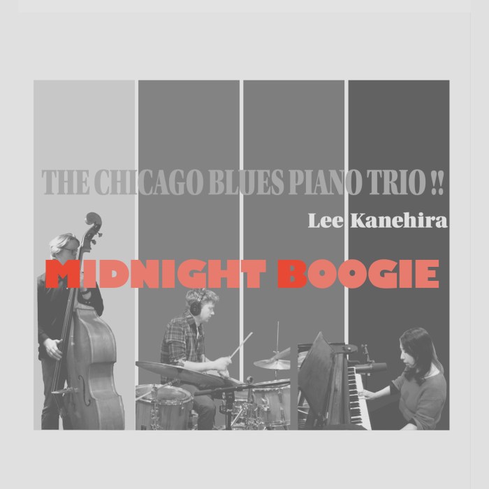 シカゴの老舗スタジオ「Joyride Studio」で、ピアノとボーカルLee Kanehira 、アップライトベースJohn W. Lauler、そしてドラムDerek Hendricksonのトリオで、戦前に活躍したタンパ・レッドの名曲「MIDNIGHT BOOGIE」を演奏しました。ブギ・ウギの中毒性を体現した、楽しいダンスナンバーになりました!ぜひ聴いてみてください。